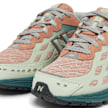 The U1906WFB combines the best that New Balance technology has to offer: shock-absorbing N-ergy, ACTEVA LITE cushioning and segmented ABZORB SBS pods on the heel. Together with the “New Spruce” colorway, the result is a coherent sneaker with an orange mottled mesh, blue/white overlays and an N-logo, which was constructed with ribbons for extra texture.Upper: 100% Synthetic, Textile